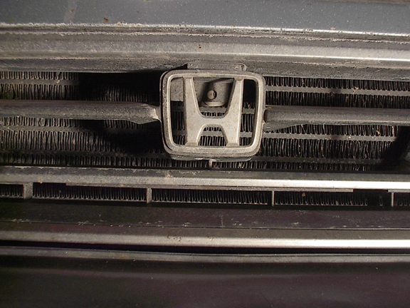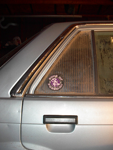 After driving the Honda for over a year with a broken out left-rear triangular window due to burglars, replacing the window became necessary. The first attempt at an oak board worked until it rattled loose and fell out. Drastic measures were necessary. A piece of corrugated Lexan was die-cut to fit into the space, the original rubber fittings were re-used and then the whole thing was siliconed watertight. |