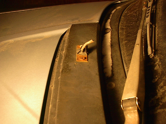 Someone standing on the hood of the car managed to break the original nozzle from which windshield wiper fluid sprays onto the window. In order to keep the passenger side of the window clean a new nozzle was fashioned out of copper tube. The nozzle was then fitted onto the original tube and mounted to the housing with a small piece of metal and some screws. Tests were then done, crimping the end of the nozzle with a pliers to limit the amount of fluid sprayed. |